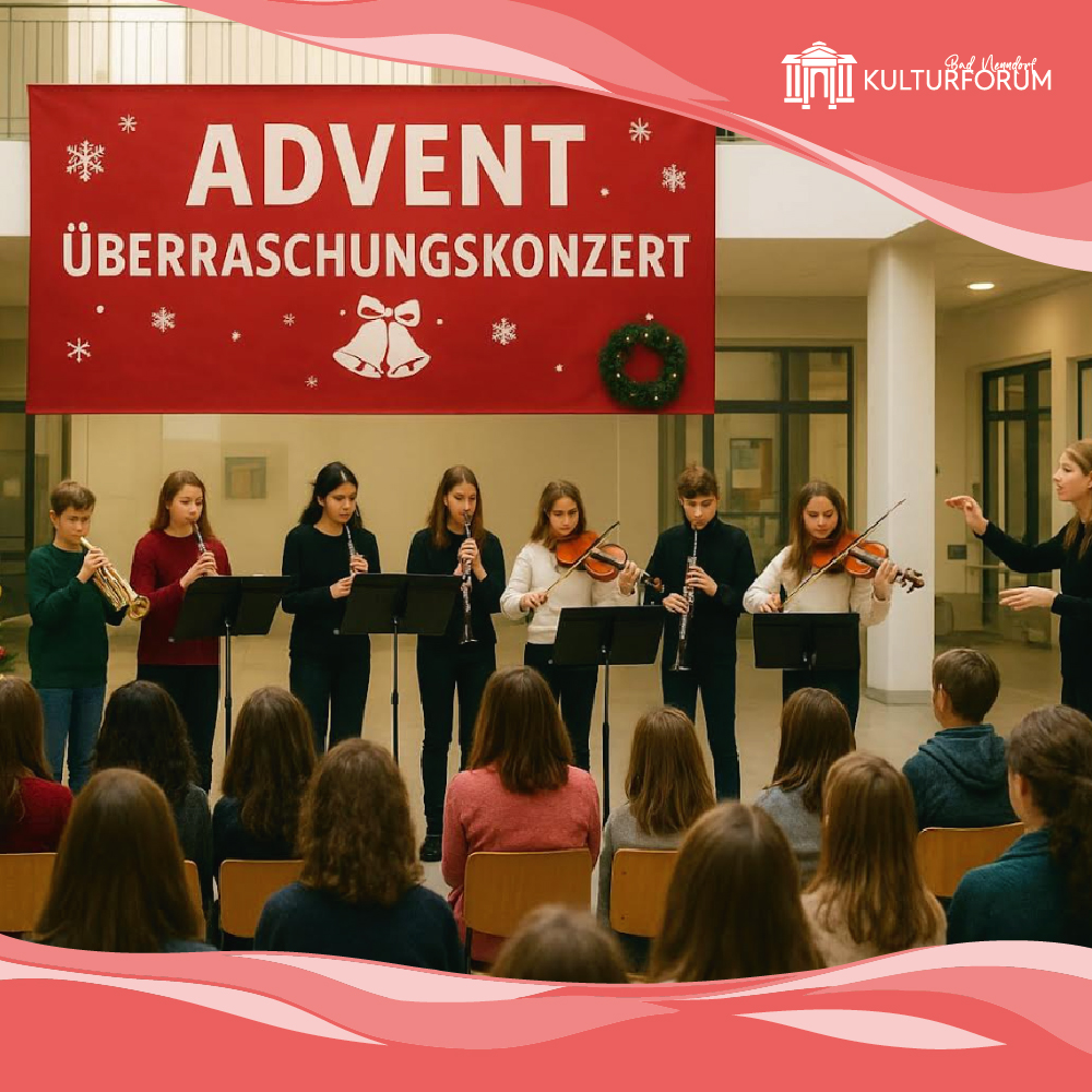 Am Mittwoch, den 4. Dezember, lädt das Kulturforum Bad Nenndorf gemeinsam mit der Musikschule Mensching um 16 Uhr herzlich zu einem besonderen musikalischen Nachmittag in das Atrium des Kurhauses ein. Unter dem Motto „Musik zur Marktzeit“ gestalten Schülerinnen und Schüler sowie erwachsene Musikerinnen und Musiker ein adventliches Überraschungskonzert, das mit vielfältigen Klängen auf die Weihnachtszeit einstimmt.